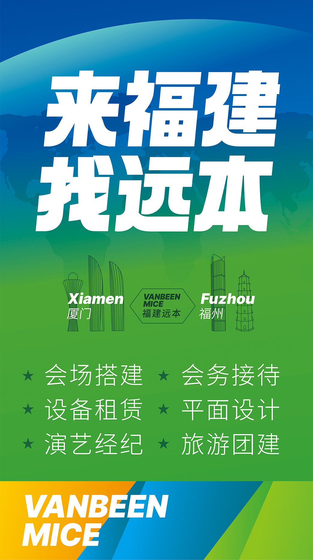 廈門(mén)遠(yuǎn)本成立于2013年,是一家集策劃設(shè)計(jì)、落地搭建以及會(huì)議接待等全案服務(wù)的DMC公司。公司擁有LED屏幕、燈光音響、木作工廠等專(zhuān)業(yè)舞美設(shè)備,擁有一批專(zhuān)業(yè)穩(wěn)定的策劃設(shè)計(jì)和會(huì)務(wù)接待團(tuán)隊(duì),能夠快速、精準(zhǔn)地為客戶(hù)提供優(yōu)質(zhì)的策劃、設(shè)計(jì)、搭建、接待等服務(wù)。公司已服務(wù)過(guò)華為、阿里、麥當(dāng)勞、中國(guó)移動(dòng)、埃克森美孚、興業(yè)銀行、招商銀行、華潤(rùn)三九、齊魯制藥、萬(wàn)邦制藥等國(guó)內(nèi)外知名企業(yè),并成功入選中國(guó)國(guó)旅、中旅、康輝國(guó)旅、錦江國(guó)旅、中智商展、墨馬傳媒等國(guó)內(nèi)知名PCO公司供應(yīng)商庫(kù)。